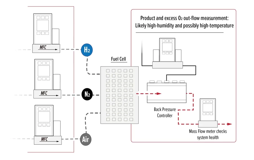 氢气质量流量控制器在高达 12,000 SLPM 的满量程流量下模拟燃料电池行为 ,响应迅速,精度高。