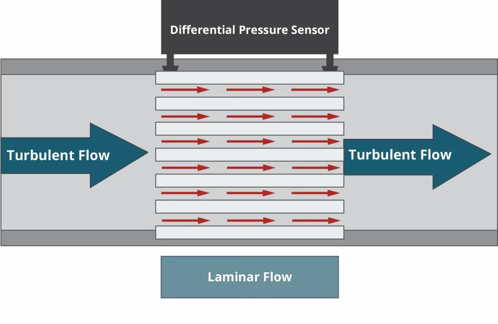 Alicat 便携式流量计是我们标准质量流量计中核心技术的电池供电版本。它们使用层流元件 (LFE) 内产生的压降来测量质量流量。首先,LFE 将湍流转换为层流,差压 (DP) 传感器测量元件上的压降。然后使用泊静叶方程计算体积流量,结合已知气体特性,使用温度和绝对压力测量将其转换为质量流量。